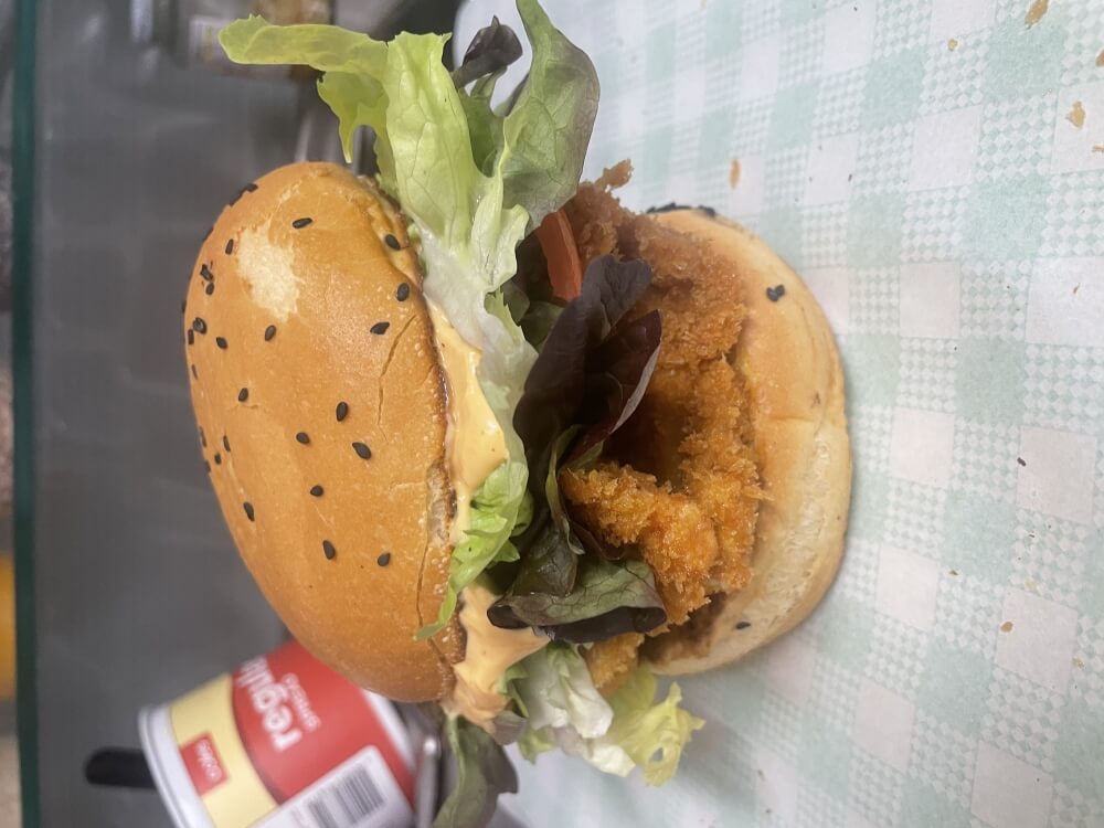 Homemade panko crumb chicken schnitzel, lettuce, tomato, served with truffle mayonnaise.
